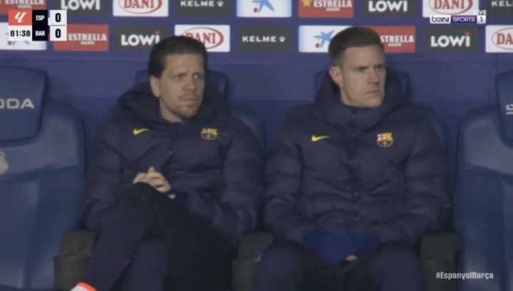 場上加西亞神撲不停,場下什琴斯尼蹺二郎腿??特獅表情嚴(yán)肅