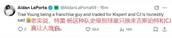 據ESPN名記Shams Charania報道,美網亞特蘭大老鷹隊將四次入選NBA全明星的友談特雷·楊交易至華盛頓奇才隊,換來CJ·麥科勒姆和科里·基斯珀特。吹楊才隊