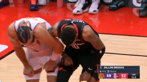 前隊(duì)友互不相讓??KD罰球時(shí)狄龍和小賈卡位 小賈一肘將狄龍推開(kāi)