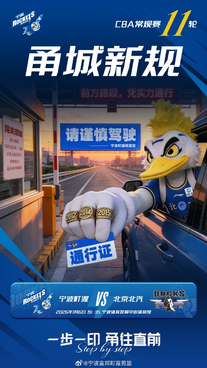寧波男籃官博曬出了本場(chǎng)比賽的寧波男籃預(yù)熱海報(bào),定名為:甬城新規(guī)。官博