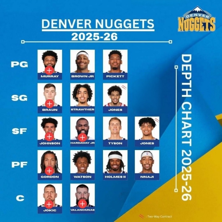 可惜傷病的鏈?zhǔn)椒磻?yīng)早在賽季初就埋下了伏筆,阿隆-戈登的跟腱和布勞恩的腳踝先出問(wèn)題,約翰遜的膝蓋還要養(yǎng)一個(gè)多月,然后是約基奇和瓦蘭前后腳受傷......相比之下,小哈達(dá)威和穆雷“只是”積勞成疾罷了。
