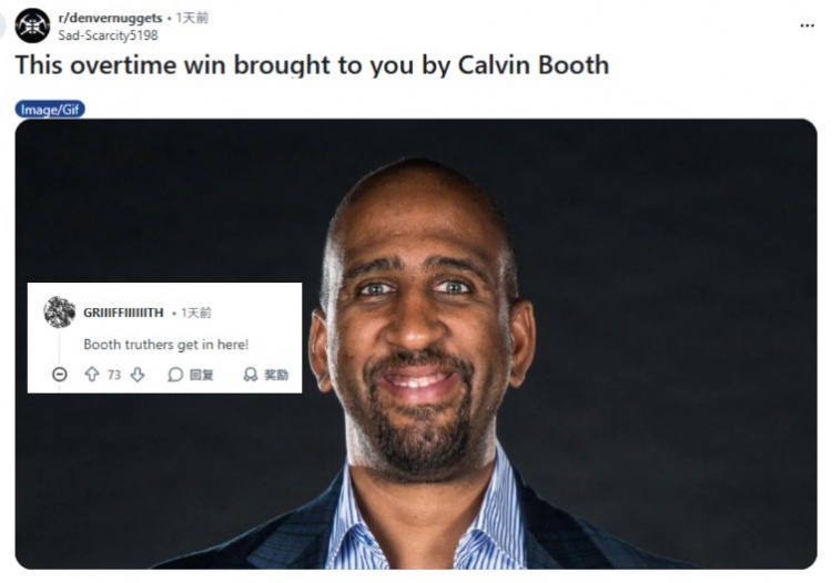 當(dāng)?shù)厍蛎缘谝粫r(shí)間在網(wǎng)上發(fā)帖:這場(chǎng)加時(shí)勝利是卡爾文-布斯帶給你的。評(píng)論區(qū)立刻有人響應(yīng):“布斯信徒集合!”并獲得了最高的點(diǎn)贊量。