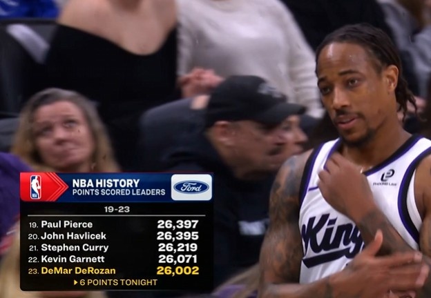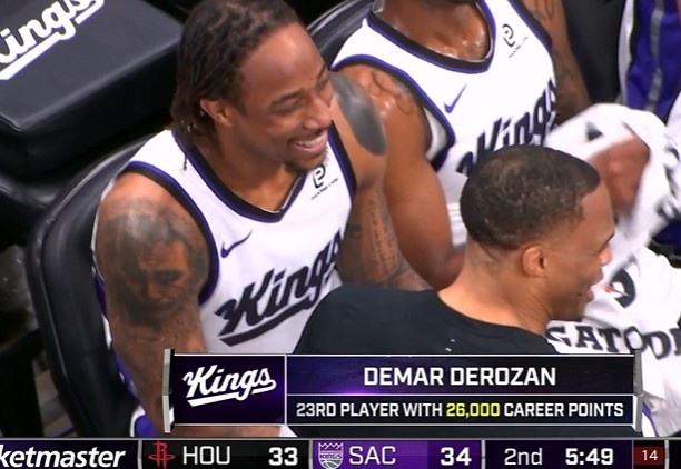 直播吧1月12日訊 NBA常規(guī)賽,德羅第人第僅杜登國王對(duì)陣火箭,贊迎德羅贊已經(jīng)得到6分。生涯