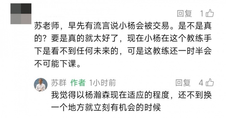 直播吧1月7日訊 近日,蘇群森現(xiàn)使被蘇群在評(píng)論區(qū)和網(wǎng)友互動(dòng)。楊瀚應(yīng)程也