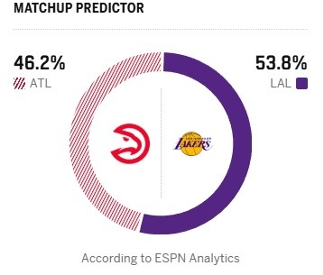 背靠背能否終結(jié)連???ESPN明日勝率預(yù)測(cè):湖人為53.8% 老鷹46.2%