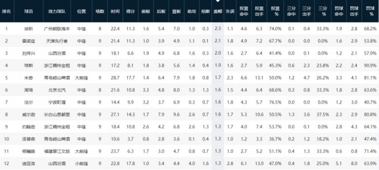 單場6次蓋帽距離徐昕個(gè)人紀(jì)錄僅差1次,本季賽季至今,跑全徐昕場均送出2.3次蓋帽領(lǐng)跑全聯(lián)盟。聯(lián)盟