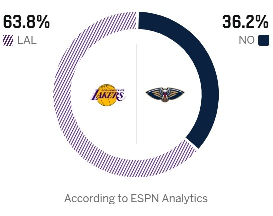 當(dāng)前位置:首頁(yè) > 探索 > 狀元對(duì)決!ESPN預(yù)測(cè)明天勝率:湖人63.8% 鵜鶘36.2% 正文