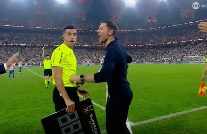 阿隆索為維尼修斯出頭,發(fā)沖雙方小摩擦后,突后偷笑西蒙尼和巴爾韋德?lián)粽莆孀焱敌?/p>