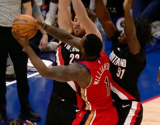 粗中有細(xì)!錫安沖擊籃筐 頂住兩人防守滯空拉桿上籃打中