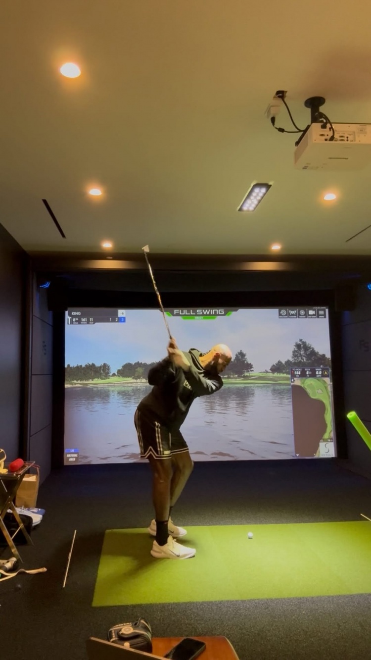 精進球技!詹姆斯曬自己在家中使用高爾夫模擬器練球