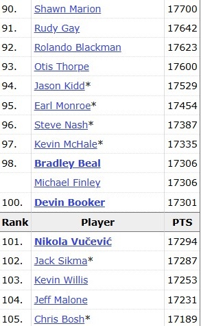 當(dāng)前位置:首頁(yè) > 熱點(diǎn) > 可喜可賀!布克NBA生涯總得分17301分 正式進(jìn)入歷史前100