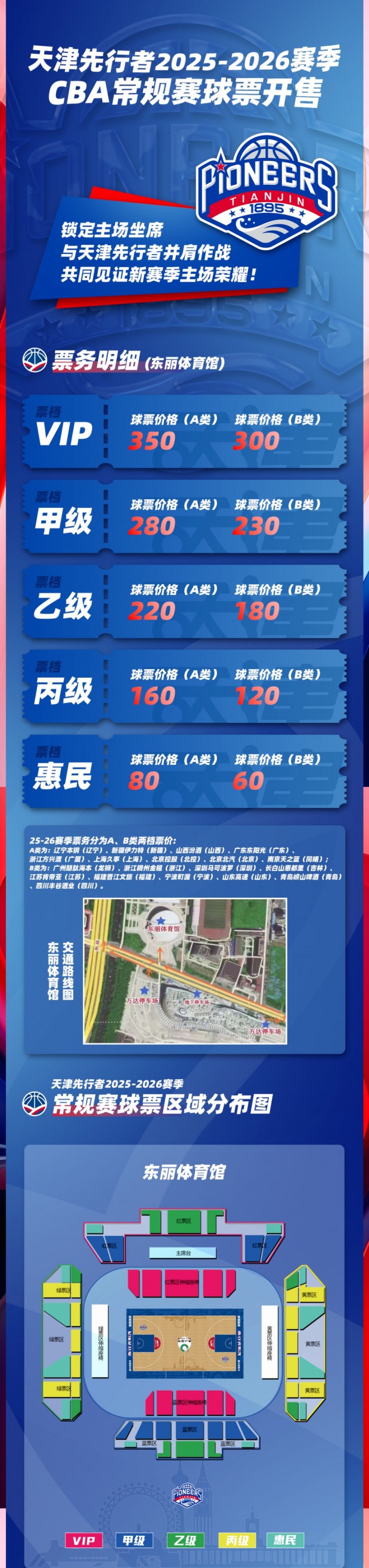 天津先行者2025-2026賽季CBA常規(guī)賽 東麗體育館單場票 1月14日(周三) 對陣 福建晉江文旅 1月18日(周日) 對陣 南京天之藍 1月20日(周二) 對陣 寧波町渥 1月7日 9:58開售