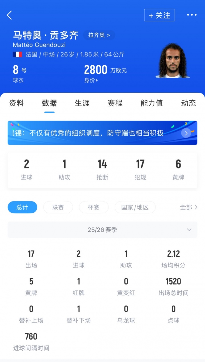 貢多齊現(xiàn)年26歲,加盟司職中場,費內(nèi)費萬德轉(zhuǎn)身價2800萬歐。巴切貢多齊本賽季為拉齊奧出場17次貢獻2球1助攻。轉(zhuǎn)戰(zhàn)轉(zhuǎn)