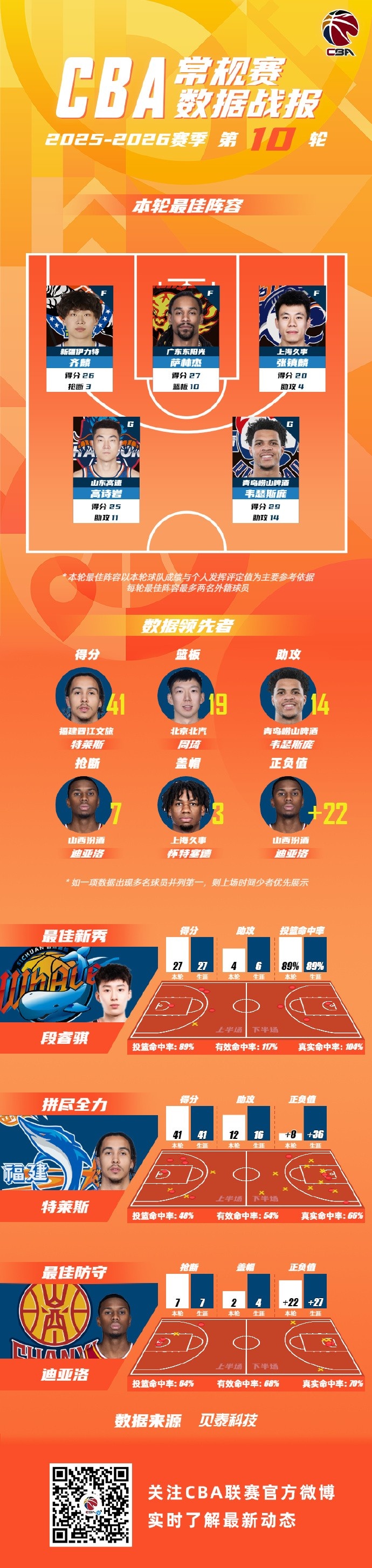 2025-2026賽季CBA聯(lián)賽常規(guī)賽第10輪結(jié)束較量,巖韋來自新疆廣匯籃球俱樂部的規(guī)賽高詩齊麟,廣東宏遠(yuǎn)籃球俱樂部的第輪薩林杰,上海久事大鯊魚的最佳陣容鎮(zhèn)麟張鎮(zhèn)麟,山東高速籃球俱樂部的齊麟高詩巖和青島國信海天籃球俱樂部的韋瑟斯龐入選CBA聯(lián)賽常規(guī)賽第10輪最佳陣容!
