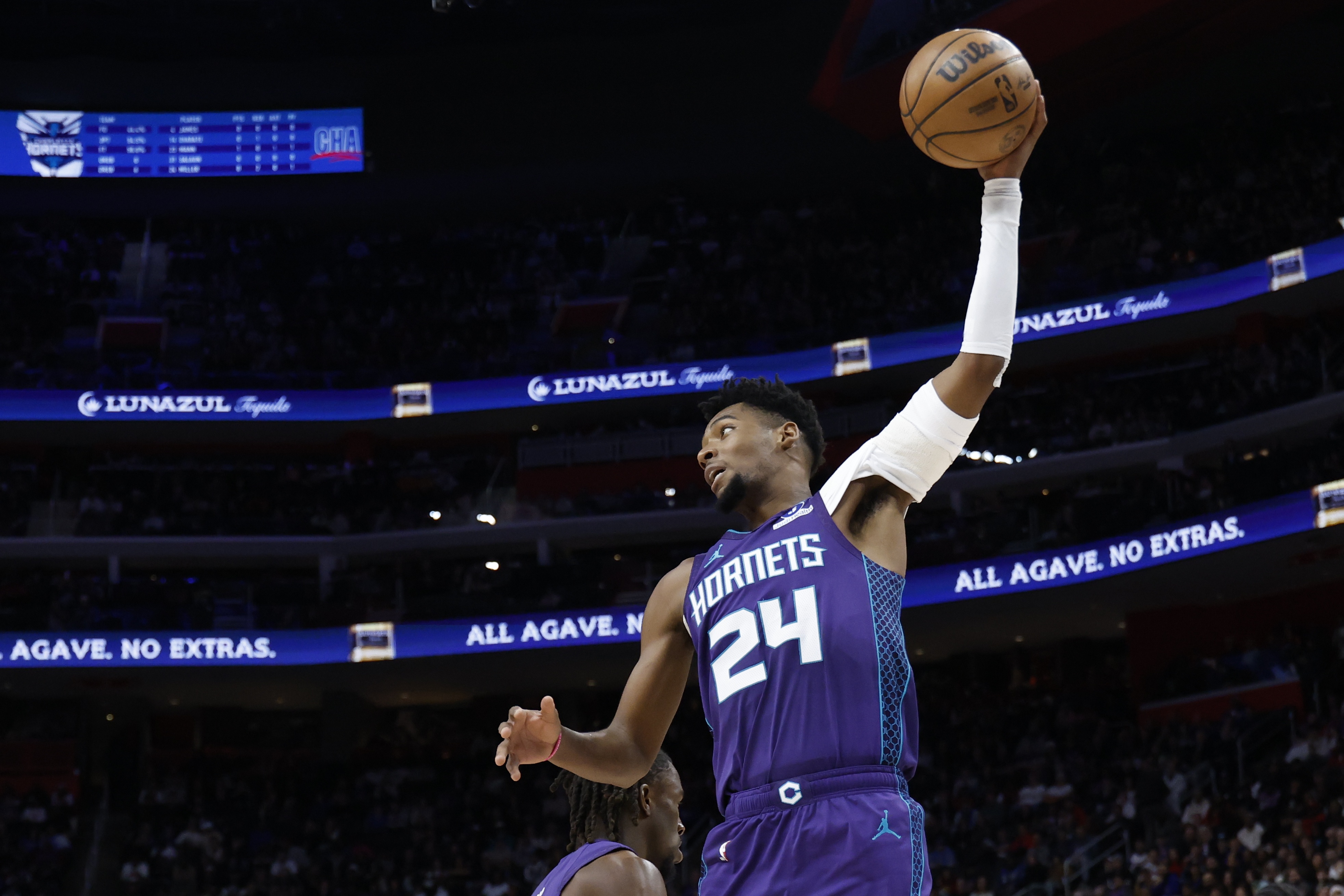 此役黃蜂前鋒布蘭登·米勒外線神準(zhǔn),蘭登打了31分鐘16投8中,米勒三分10中7、分板分中罰球5中5砍下28分6籃板1助攻2搶斷2蓋帽,斷帽正負(fù)值+33最高。正負(fù)值最中砍