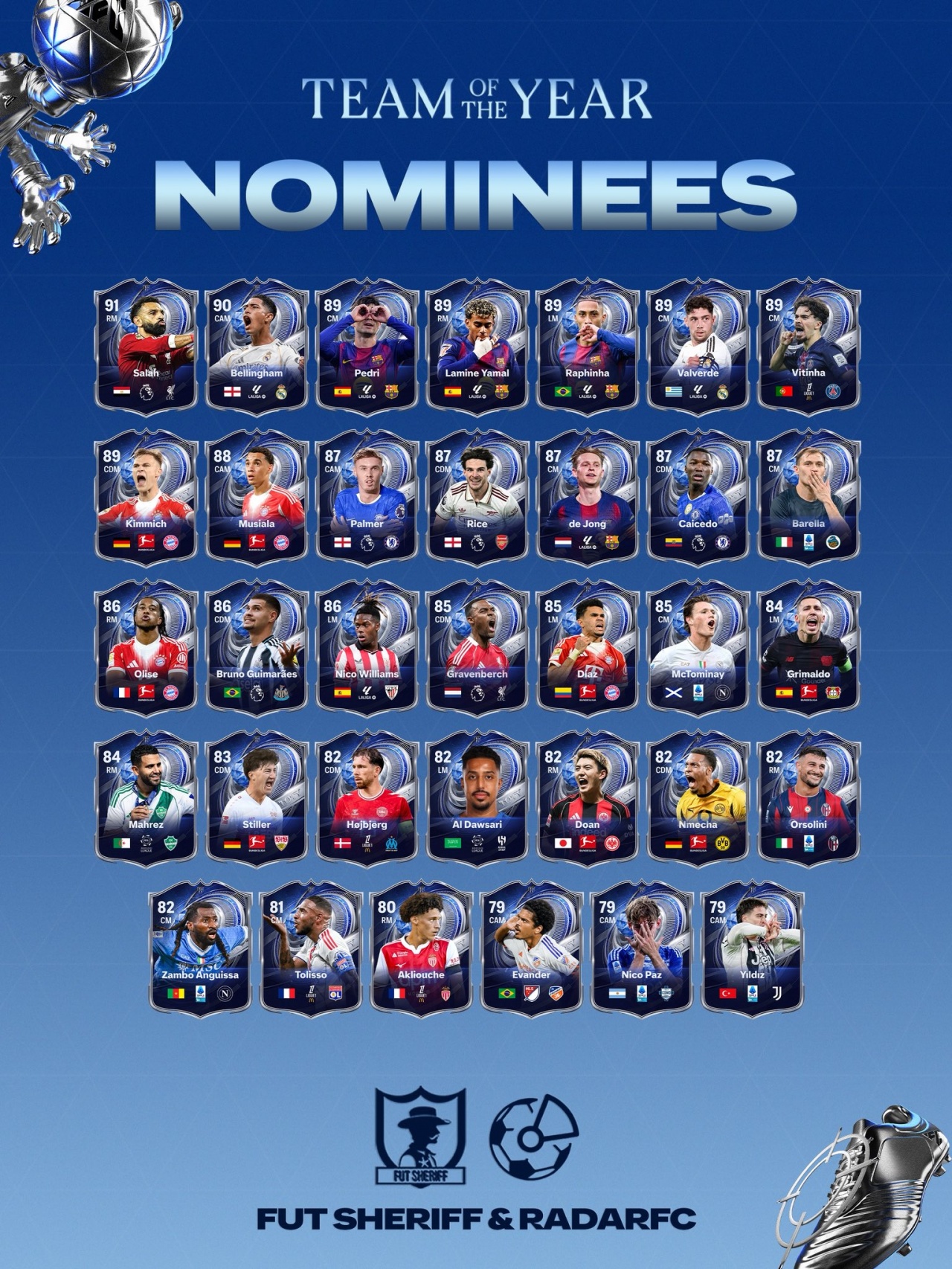 EAFC26年度藍候選:27名前鋒含梅羅,亞馬爾拉菲薩拉赫被列為中場