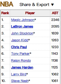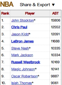本場(chǎng)比賽開(kāi)始前常規(guī)賽歷史助攻榜